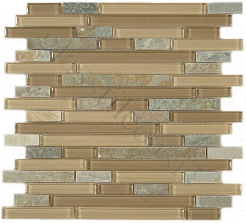 Contemporary Mocha Random Bricks Cream/Beige Backsplash Glossy & Unpolished Glass and Slate- 18014 Rating :
