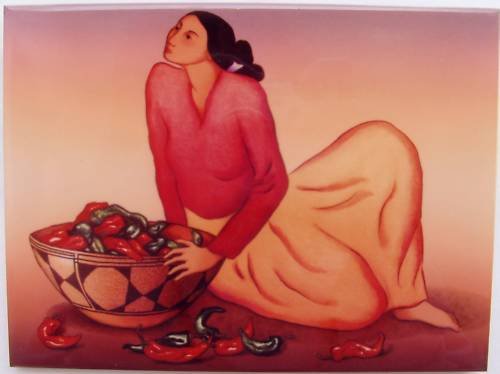 This Beautiful, Collectible Ceramic Art Tile features work by the world famous R.C. Gorman. He is known as the "Picasso of the Southwest". His work is known for its simplicity, and his colorful depiction of Navajo women, in particular. This one is titled "Tanya". This tile measures 6 inches by 8 inches, and its finish is called a "crystal" finish due to the lustre of the shiny resin coating. There is a mount on the back for hanging, and also a photo stand, so that it may be displayed on a shelf. There is also a brief history of R.C. Gorman on the back of the tile. Once you see this beautiful work of art, you will surely want more than one!